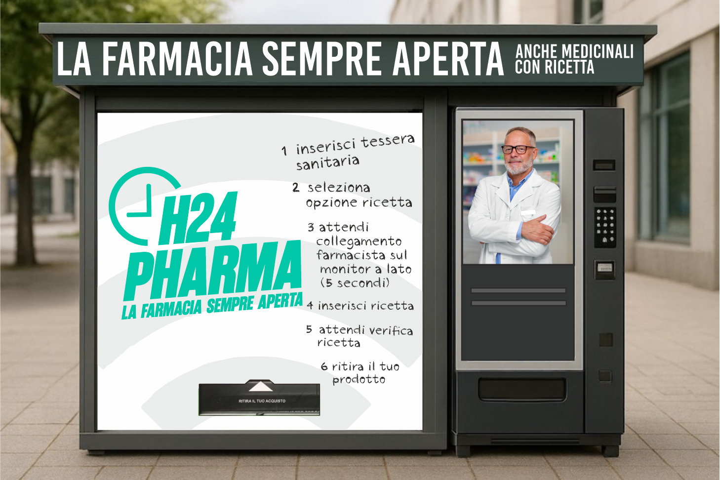 H24 Pharma è una piattaforma innovativa che consente di offrire servizi farmaceutici H24, anche in assenza fisica del farmacista in sede, garantendo piena conformità normativa e continuità di servizio.